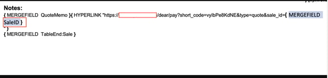 - Mouse over the "SaleID" merge field and right mouse; click "Toggle Field Codes".