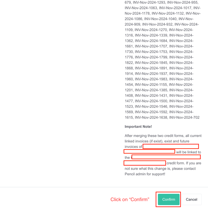 Do not forget to click on "Confirm" at the bottom of the pop-up screen to finish merging the two customers.